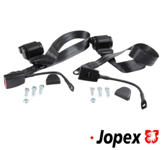 Biztonsági öv készlet, első, bal/jobb (mindkét üléshez), fekete, 3 pontos automata. Dán gyártmány. E minösítéssel, párban van ebben a csomagban.