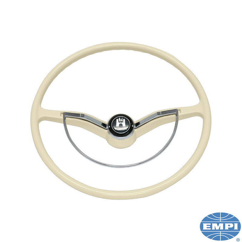 Kormány (eredeti stílus) komplett, króm kürtgombbal, elefántcsontszínü, Bogár/KG/Typ3 08/61-07/71, EMPI