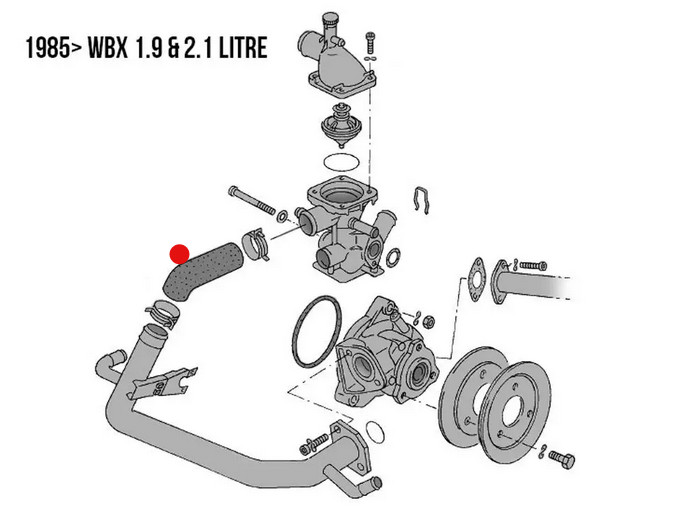 Vízcsö vízpumpától termosztátig VW Transporter T3 (Syncro is) 1.9-2.1 08/85-07/92