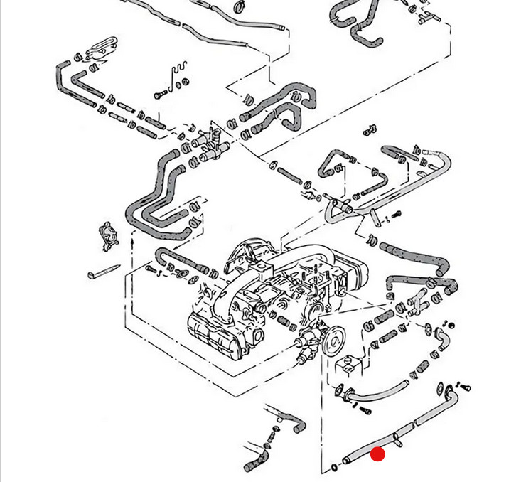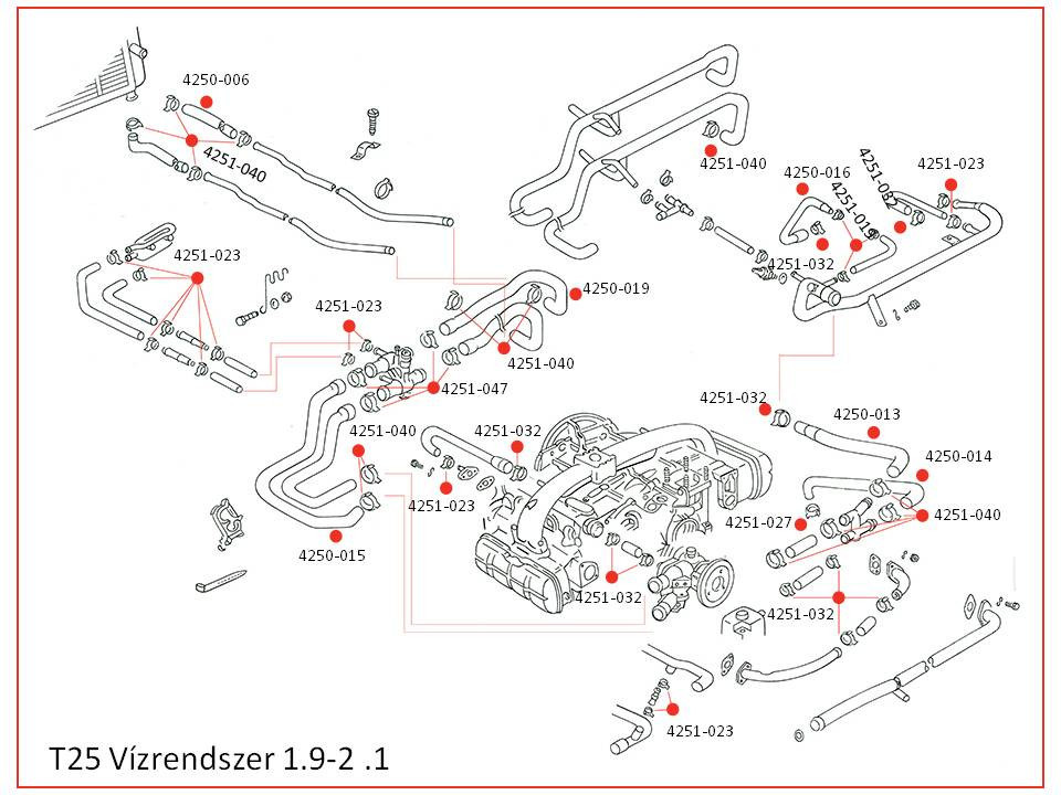 Vízcsö, hengerfej és termosztátház között, T25/T3 1.9 DF, DG, DH, GW, 08/82-07/85
