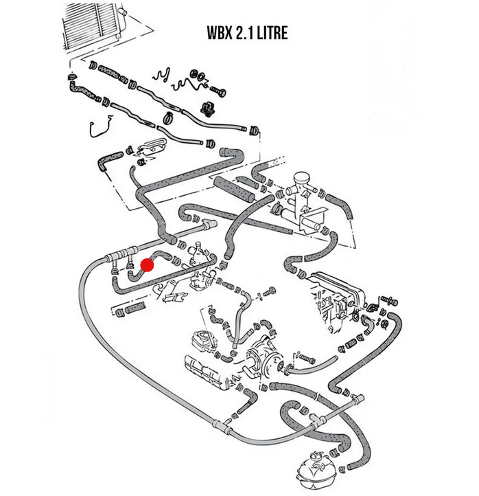 Vízcsö, termosztát és müanyag vízcsö között, T25 2100cc