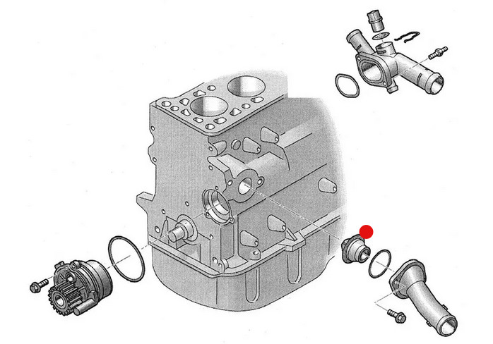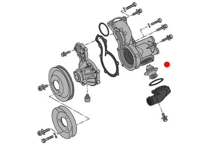 Termosztát és a tömítés T25 (87C°) 1.6-1.7D 01/84-07/92, VW Golf/Jetta 1.5-1.6 (incl. D) 02/74-12/92, Porsche 924 (92 kW) 2.0 11/75-08/89