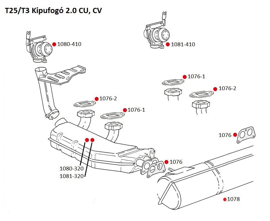 Exhaust muffler gasket, 2.0, for Type 4 engine, for cylinders 2 and 3, 1978-