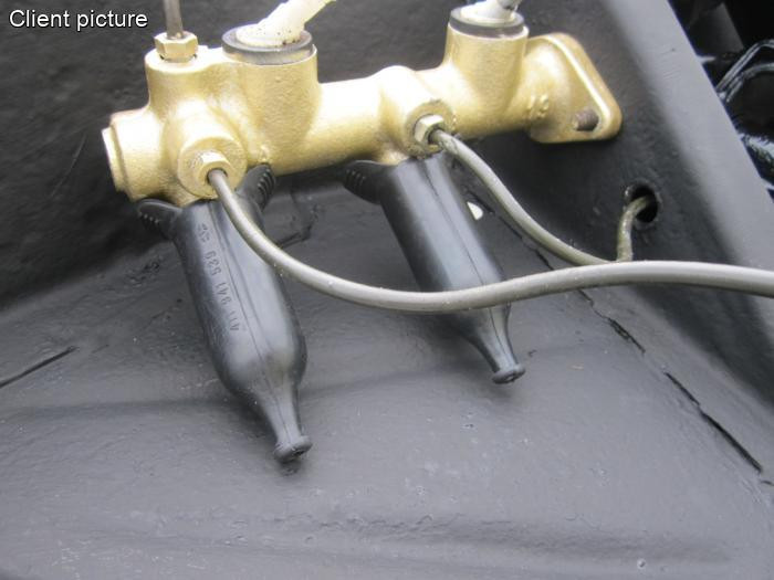 Rubber protective cap for the brake pressure contacts on the master cylinder. This was introduced on most models from the fall of 1966. We recommend using this on all single circuit brake systems to protect the brake pressure contact connections.