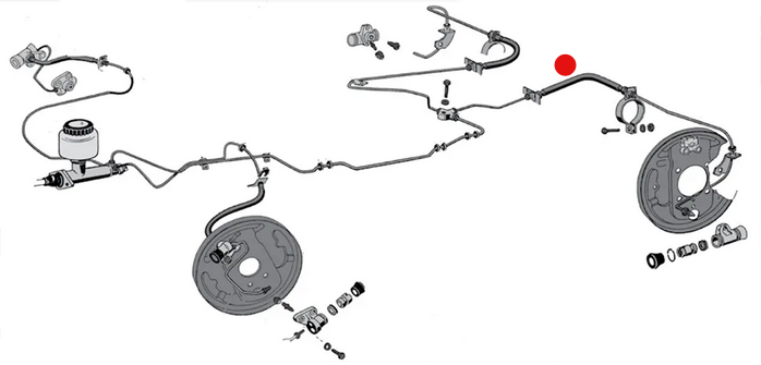 Brake pipe, rear, for oil-filled half-axle, 270mm Beetle/Karmann Ghia,Typ3/181 type, bus -07/67,T2 right 08/67-07/79,Typ3 right