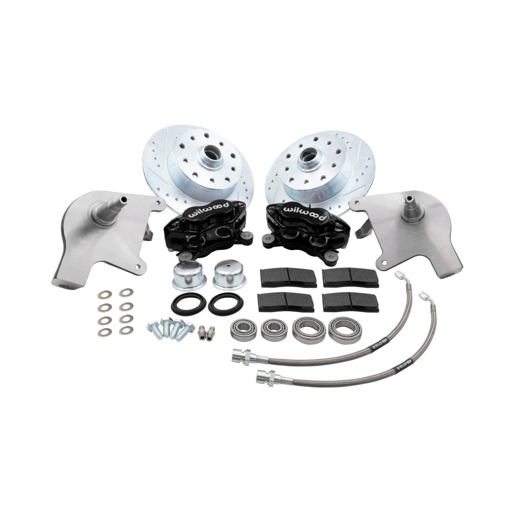 Front disc brake set, with stub axle, black 4-piston calipers, double distributor, Beetle/Karmann Ghia 08/65-, EMPI, WILWOOD