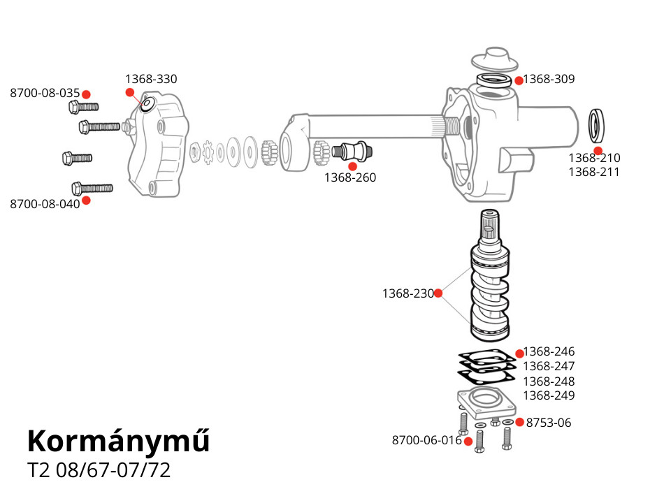 Pittmann shaft drive in steering gear, T2 08/67-07/72