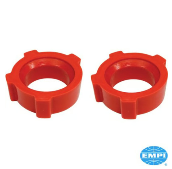 Inner diameter 48mm, Outer diameter 79mm at the highest point and 74mm at the lowest point, thickness 29mm, The previously mentioned torsion bar cover plates have urethane rubbers that maintain the height of the rear suspension. Always use copper grease when installing urethane. Bring a model with you, just in case. Sold in pairs. This set of 2 serrated urethane bushings (16-5131) is precision engineered for Volkswagen torsion bars, ensuring a tight fit and reliable performance. Compatible with Type 1 Beetle (1950-1979), Karmann Ghia (1950-1979) and Type 3 models (Squareback, Fastback, Notchback 1965 to 1979), these bushings provide improved durability and stability over traditional rubber parts. Their serrated design improves grip and alignment, minimizes movement under load, and ensures the torsion bar remains securely attached. Made from high-quality urethane, they offer excellent resistance to wear and deformation, making them ideal for classic Volkswagen restorations or performance upgrades.