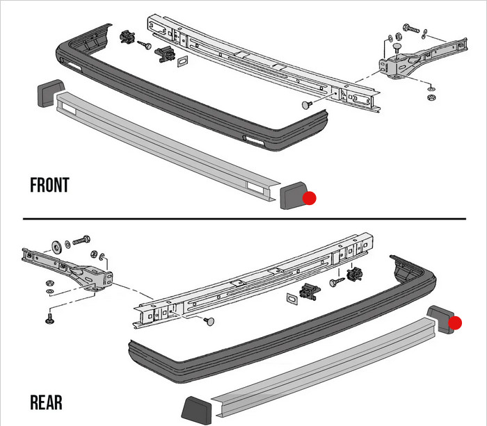 Bumper plastic corner, front left/rear right, Golf Mk1 (1975-1979), Caddy Mk1 (1983-1992)