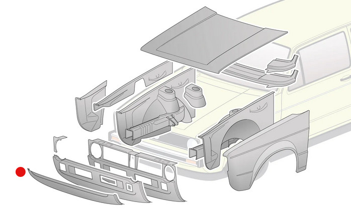 Front fascia part, apron panel, outer/lower part, Golf Mk1 (1975-1983)