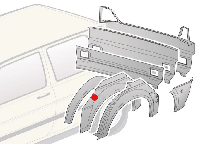 Rear mudguard, outer, 3-door, left rear, Golf Mk2 (1984-1992)